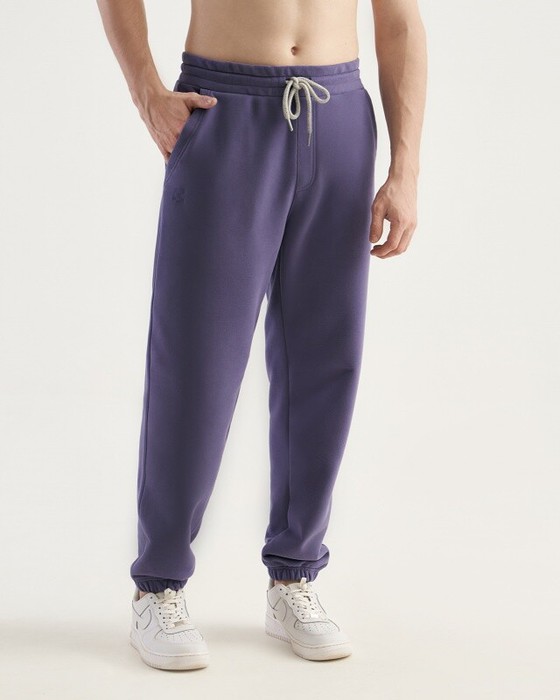 Мужские брюки, джоггеры с резинкой по низу брюк. Пояс из основной ткани, внутри резинка. По поясу отстрочка, петли,шнур. Боковые карманы с двойной отстрочкой, боковые швы отстрочены. Задний карман на правой задней половинке брюк.