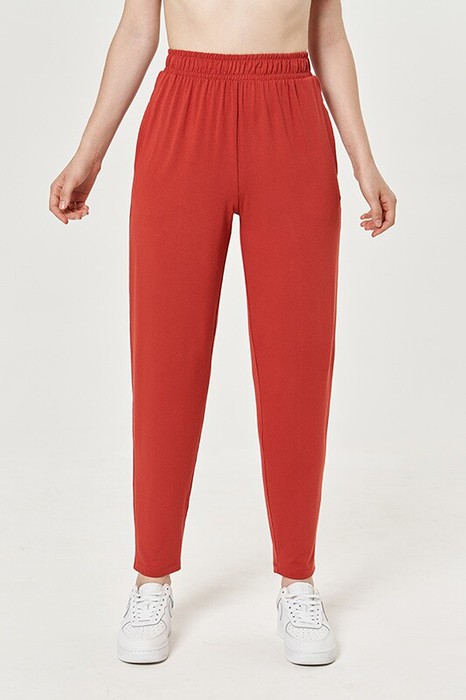 Брюки - бананы. Карманы в боковом шве. Пояс на резинке с двойной отстрочкой.