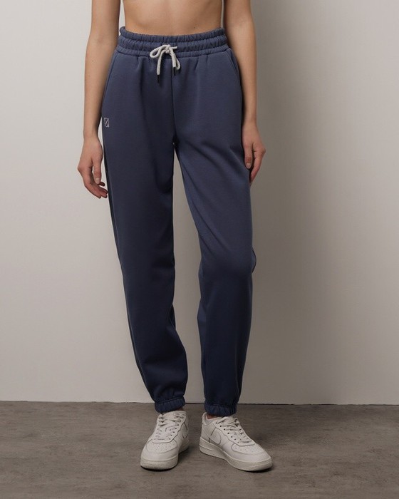 Джоггеры свободного кроя с боковыми карманами, собранные внизу. Широкий эластичный пояс со шнуром.