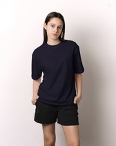 Футболка свободного кроя, втачной рукав. Горловина окантована бейкой из рибаны