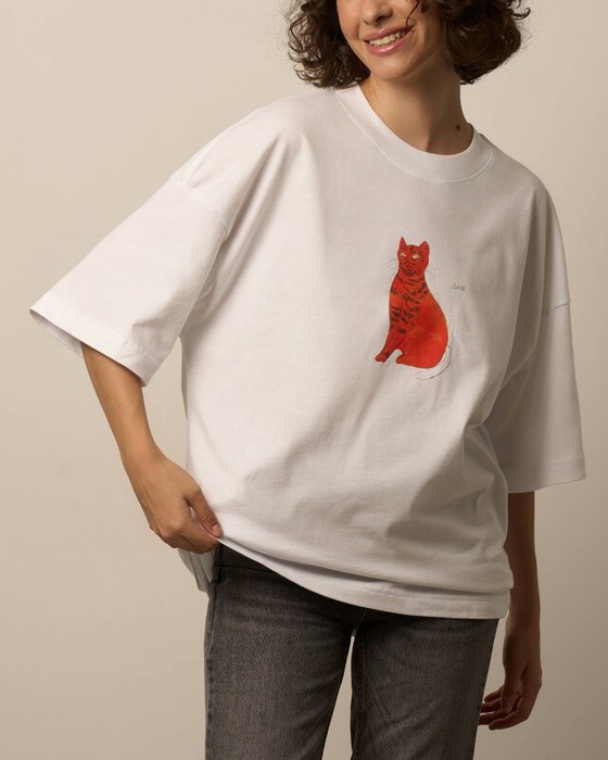 Футболка свободного силуэта. Спущенное плечо. Горловина из двух деталей, из рибаны.