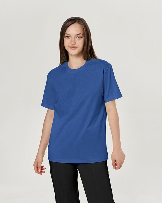 Boyfriend крой, укрепление по горловине спинки, круглый вырез. Горловина рибана. Отстрочка по горловине переда