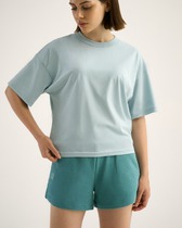 Укороченная футболка CROP, спущенное плечо. горловина из рибаны. Укрепление плечевых швов и шва горловины бейкой из основной ткани.