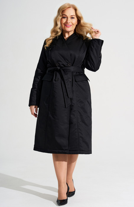 Модное утепленное пальто полуприталенного силуэта от российского производителя Dimma D’imma Fashion Studio из ткани с водоотталкивающей пропиткой. Модель с двубортной застежкой на пугивицы и воротником -стойкой. На полочке прорезные карманы с клапанами. Справа на полочке дополнительный карман с декаоративной треугольным клапаном на пуговице. Все карманы функциональные. На рукавах шлицы с декоративными пуговицами, одна из которых функциональная. Пояс в комплекте . Сзади шлица.