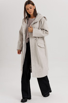 Элегантное, деловое, молодежное драповое пальто полуприлегающего силуэта. Прекрасно держит форму и придает фигуре четкий силуэт. Отделка из искусственной лакированной кожи придает пальто выразительность, индивидуальность и яркость. Центральная застежка на две кнопки сверху и потайные пуговицы. Длина изделия по спинке 86 см, длина рукава 63 см. Состав драпа: 50% шерсть, 30% полиэстер, 20% кашемир.