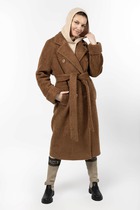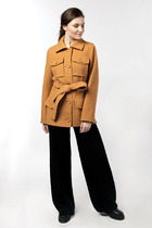 Пальто приталенного силуэта из экокожи. Центральная застежка и карманы на молнии ( молния металл серебро № 7). Воротник стойка, съемная пелерина (мех-кролик, расшитый натуральной кожей, окрас под шиншиллу) , пристегивающаяся на молнии. Съемный завязывающийся пояс. Длина изделия по спинке 92 см, длина рукава 63.5 см утеплитель холкон (см.описание), плотность 150.