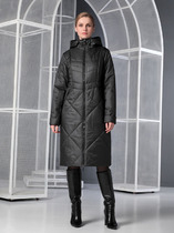 Весеннее пальто приталенного силуэта. Утеплитель холкон (см.описание), плотность 200, центральная застежка молния, закрытая планкой на кнопках. Вертикальная планка зрительно удлиняет фигуру. На груди декоративная пряжка, капюшон отстегивается, длина изделия 92 см, длина рукава 64 см.