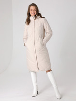 Утепленное, лаконичное пальто прямого силуэта из полуматовой ткани с водоотталкивающей пропиткой и суперсовременным утеплителем ТермМакс. За дополнительную защиту от непогоды отвечает капюшон с цельнокроенной стойкой со шнурком, регулирующим объем капюшона. Капюшон и подборта отделаны тканью-компаньоном, в тон которой подобран подклад. Модель с застежкой на молнию и кнопки, рукавом с декоративной патой и трикотажной манжетой, помогающей регулировать длину рукава. Пояс-шнур в комплекте.