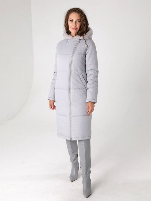 Длинное зимнее пальто прямого силуэта с втачными рукавами и асимметричной застежкой на двухзамковую молнию, которая расстегиванием снизу позволяет регулировать ширину шага при подъеме и ходьбе. Капюшон оформлен меховой опушкой, не отстегивается. Модный искусственный мех  хорошо стирается и не меняет свой красивый внешний вид после высыхания. Комфортности добавляют удобно расположенные  карманы с молнией. Есть внутренний кармашек, тоже на молнии.  Модель этого пальто рекомендована женщинам и девушкам любой возрастной категории. Оно универсально  - его можно сочетать как с платьями и юбками, так и с джинсами и брюками.  Плащевая ткань имеет водоотталкивающую пропитку,  которая выдержит небольшой  дождь или снег. Хорошо зарекомендовавший себя современный утеплитель Холлофайбер, плотностью 300 г/м, защитит от холода и  ветра. Подкладка в изделии - в мелкую полоску. Выбирайте один из актуальных в этом сезоне цветов, и Ваша зима будет не только комфортной, но и стильной!