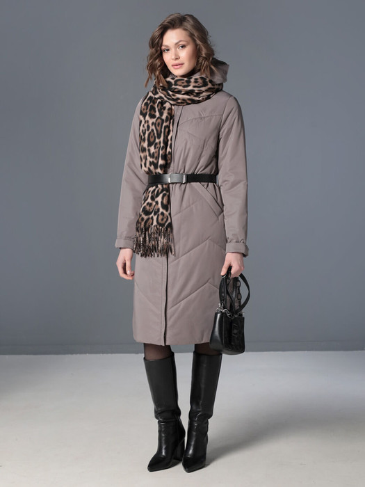 Элегантное демисезонное пальто средней длины полуприлегающего силуэта с легким А-образным расклешением, с застежкой на двухзамковую молнию, которую можно расстегнуть как сверху, так и снизу. Модель такого пальто подходит для девушек и женщин разной возрастной категории. Декоративные строчки красиво подчеркивают и "вытягивают" силуэт. Длина втачного рукава регулируется отворотом. Воротник - уютная стойка, переходящая в капюшон. Удобно расположенные карманы застегиваются на молнию. Есть внутренний кармашек, тоже на молнии. Плащевая ткань, из которой выполнено изделие, имеет водоотталкивающую пропитку, выдерживающую небольшой  дождь, снег и ветер. Хорошо зарекомендовавший себя утеплитель " Холлофайбер", плотностью 200гр/м, защитит от холода. Подкладка в изделии выполнена из ткани в мелкую полоску.