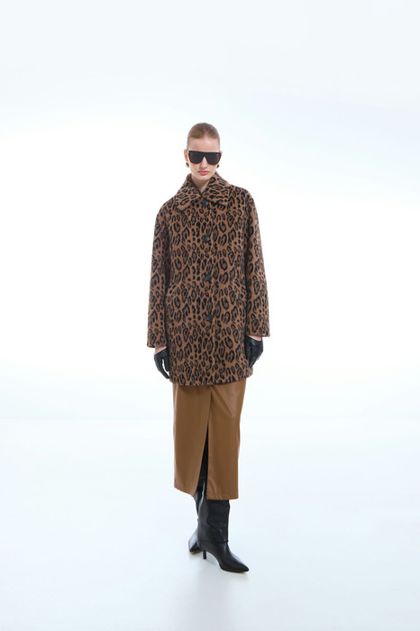 Пальто женское демисезонное, однобортное, прямого силуэта длиной выше колена. Линия плеча спущена. Перед с карманами листочка с втачными концами. Рукав длинный, двушовный. Воротник отложной. Застежка на пуговицы. Пальто на подкладке.