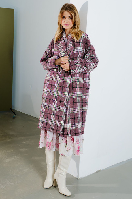 Пальто Lokka 1568 бордовый+черный+белый/клетка