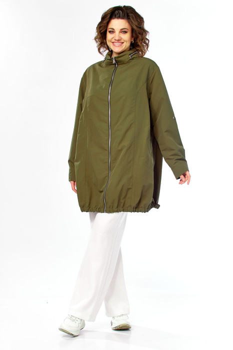 Парка женская свободного кроя с центральной застежкой на молнию. Перед с рельефными швами и боковыми карманами в рамку.Спинка со средним швом до талии и отрезной центральной частью сосборенной складками сверху. Рукав втачной одношовный с манжетом и хлястиками внутри, с возможностью регулировать длину рукава. Воротник-стойка с молнией, внутри стойки есть капюшон. Парка без подкладки. Фурнитура может отличаться от заявленной на фото.