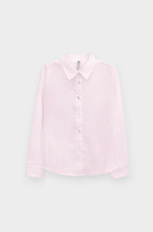 Рубашка для девочки из практичной ткани с современными деталями. Планка, концы воротника и внутренние манжеты выполнены из ткани контрастного цвета. Это разбавляет официальный стиль и позволяет не стирать белую рубашку каждый день.