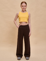 Широкие прямые брюки для мальчика из футера плотностью 350 гр/кв.м. Карманы в боковых швах. На задней половинке брюк справа накладной карман. Пояс из основной ткани, внутри широкий эластик, прострочен двумя строчками. В поясе внутренняя утяжка на шнурок. По бокам трикотажные лампасы.