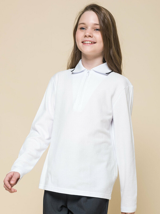Джемпер из трикотажа пике для девочки. Приятный, плотный, мягкий материал из 100% хлопка. Почти не мнется, гигроскопичен, с хорошей воздухопроницаемостью, не требует сложного ухода. Центральная застёжка на модную короткую молнию из пластика — любой ребёнок сможет быстро надеть и снять изделие. Лаконичный дизайн позволяет сочетать лонгслив с различными брюками и юбками. Модный и практичный вариант школьной одежды для девочек.