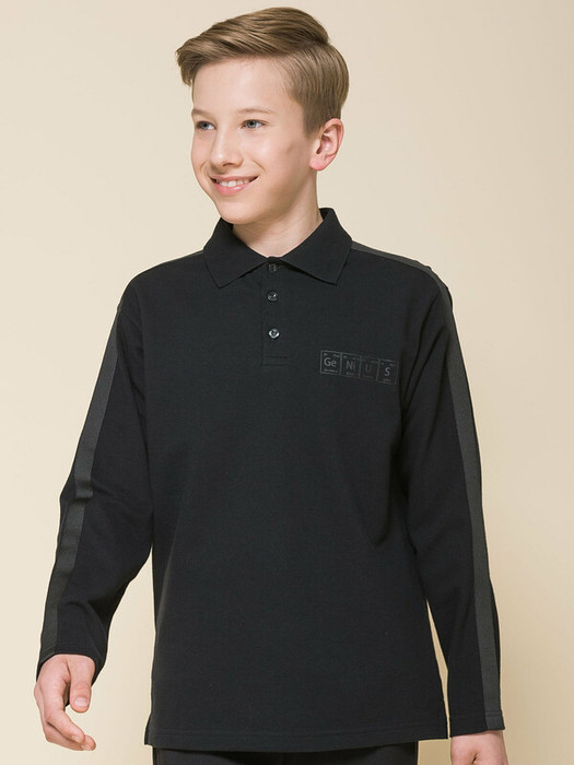 Джемпер-поло из 100% хлопка для мальчика. Натуральный состав ткани обеспечивает изделию мягкость, воздухопроницаемость и комфортность. Воротник из рибаны — долго не теряет форму и устойчив к частым стиркам. Модель декорирована лампасами вдоль плечевых швов и рукавов — один из актуальных трендов. На груди оригинальный силиконовый принт в виде элементов таблицы Менделеева, который устойчив к частым стиркам. Джемпер застёгивается на 3 пуговицы под горловиной — удобно надевать и снимать. Стильный вариант школьной формы для мальчиков.