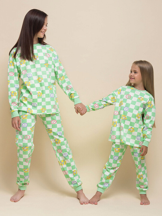 Яркая и уютная пижама для девочки. Модель выполнена из 100% хлопка — идеальный вариант для детской пижамы. Ткань из хлопка мягкая, отлично пропускает воздух, давая коже ребёнка дышать. При этом в пижаме ребенку будет комфортно, даже если он сбросит одеяло во сне. Всё это обеспечивает комфортный и качественный сон. Джемпер и брюки умеренного объёма, плечо немного спущено, рукава широкие и свободные — в пижаме очень удобно спать. В поясе брюк мягкая и широкая резинка — не перекручивается и не давит. Манжеты и отделка горловины эластичные — они не растягиваются, пижаму удобно надевать и снимать. Комплект трендового цвета "зелёный инжир" выполнен в актуальной скейтерской стилистике. Он придётся по душе маленькой моднице. Пижаму украшает позитивный принт со смайликами. Комплект подходит для сна как дома, так и в детском саду — отличный выбор для вашего ребёнка! Станет замечательным подарком, который способен вызвать искреннюю радость у каждого ребёнка, оставив незабываемые воспоминания о любом празднике и принося