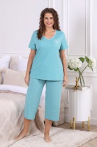 Женский костюм – майка и шорты из эластичной ткани в рубчик. Ткань отлично растягивается и быстро возвращается в исходную форму, приятна на ощупь и проста в уходе. Майка на широких бретелях свободного кроя с увеличенными проймами – стильная, спортивная, уютная. Обтягивающие короткие шорты на мягкой резинке из основной ткани – отлично сидят, акцентируют внимание на ногах. В костюме удобно спать, заниматься повседневными делами и просто быть собой.