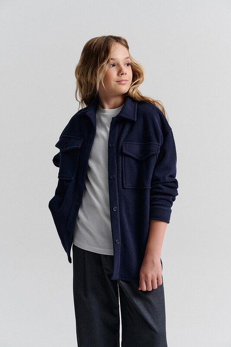 Рубашка  для девочки из флиса. Куртка модного оверсайз-силуэта со спущенным плечом подарит ребёнку комфорт и свободу движения. Классическая застёжка на пуговицы. Стильно и практично. Манжеты рукавов застегиваются на пуговицу. Накладные карманы с клапаном застугиваются на пуговицу — удобно пользоваться. Модель однотонная, без принта. Изделие неприхотливо в уходе. Одежда из флиса тёплая, лёгкая, мягкая, просто стирается и быстро сохнет, не выгорает и не скатывается, сохраняет первозданную форму в течение длительного времени. Толстовку можно носить девочкам в садик и подросткам в школу. Рубашку можно носить круглогодично: летом, осенью, зимой, весной и в демисезон.