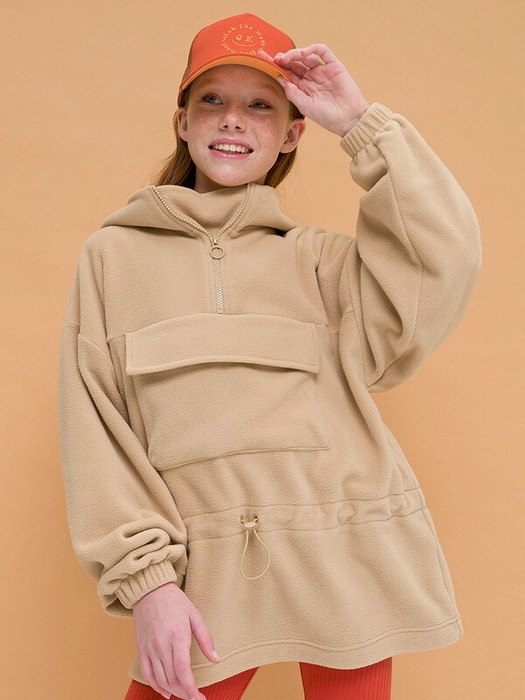Толстовка-анорак из флиса для девочки. Достоинства ткани – сухо и тепло даже в дождливую погоду, комфортно носить и легко ухаживать. Удобный и теплый капюшон. Вставка под молнией из основного материала защищает шею от ветра, холода и непогоды даже в расстегнутом виде. Большой карман с клапаном с верхним входом для рук – важные мелочи всегда при себе. Утяжка ниже линии талии регулирует объем – надежная защита от продувания. Силуэт оверсайз – можно носить на джемпер или как самостоятельный элемент одежды. Удобно бегать, прыгать и наслаждаться активными играми в любую погоду. Для теплой весны и холодного лета.