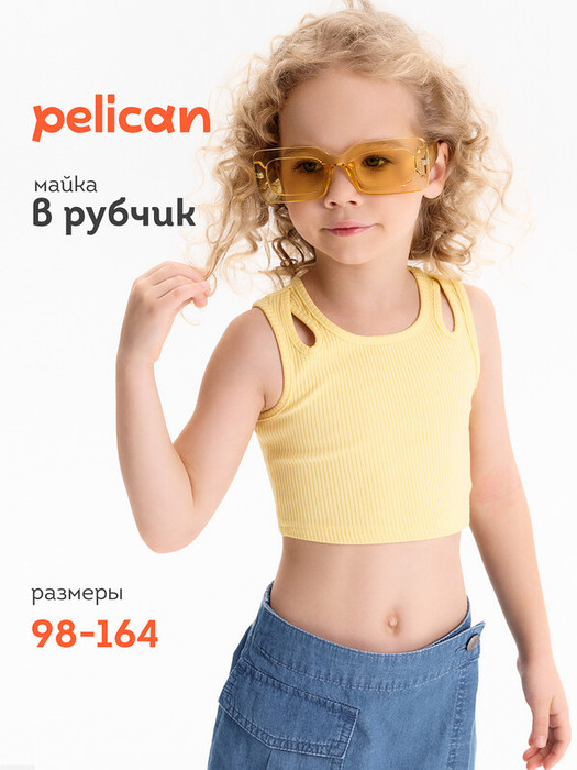 Совместные покупки Челябинск Детская одежда Футболки, майки — Pelican Майка (модель "топ") для девочек GFVY3369 Желтый