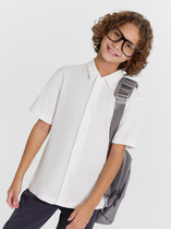 Школьная рубашка для мальчика из практичной ткани с современными деталями. Самые уязвимые для грязи детали выполнены из ткани контрастного цвета. Это разбавляет официальный стиль и позволяет не стирать белую рубашку каждый день.