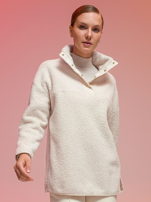 Женская толстовка-анорак из модного бербер-флиса (фактура «барашка»). Куртка свободного силуэта со спущенным плечом застёгивается на кнопки — легко застёгивать и расстёгивать. Декоративная отделка из гладкого «курточного» материала — один из актуальных трендов. В боковых швах удобные карманы. Толстовка без капюшона. Объёмный воротник можно носить двумя способами. Как воротник-стойку — защитит от холода и ветра. И как отложной воротник в более тёплую погоду. Пушистая толстовка лаконичного дизайна, без принта. Она проста в уходе: изделия из флиса прочные, легко стираются, не линяют, быстро сохнут и устойчивы к образованию катышков. Анорак из качественного флиса очень лёгкий, тёплый и прекрасно пропускает воздух. Куртка представлена в двух уютных цветах: оранжевом и молочном. Размерная линейка: XS (42); S (44); M (46); L (48); XL (50). Плюшевая толстовка подходит женщинам, девушкам, девочкам-подросткам. Идеальна как для высоких женщин, так и для девушек среднего роста. Анорак можно носить как куртку ранней осенью или поздней весной. Толстовка с воротником тёплая и мягкая. Объём позволяет надеть под низ футболку или водолазку. Флисовая толстовка — отличный выбор для прогулок и активного отдыха. Для круглогодичного применения: прохладным летом, осенью, зимой, весной и демисезон. Она станет стильным и практичным подарком подруге, дочери или сестре на Новый год или любой другой праздник.