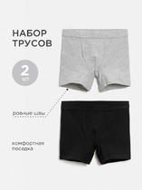 Комплект из двух трусов слипов для мальчика. 100% хлопок. Выполнены из эластичного хлопкового трикотажа. Гипоаллергенный, износоустойчивый и приятный к телу материал. Линия талии на широком тканом эластике с текстом, что придает трусам спортивность. Подходят для повседневной носки, сна, занятий спортом, подвижных игр. Не боятся частых стирок, не растянутся и не полиняют.