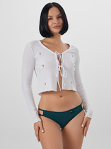 Женские трусы-шорты с низкой посадкой. Изготовлены по бесшовной технологии с минимум швов. Кромки по ноге и по талии подогнуты и приклеены, хлопковая приклеенная ластовица.  Нежное геометричное кружево по линии талии высотой 5 см – не передавливает тело и не натирает кожу.  Модель оценят те, кто ищет незаметное и невесомое белье на каждый день или особого случая.