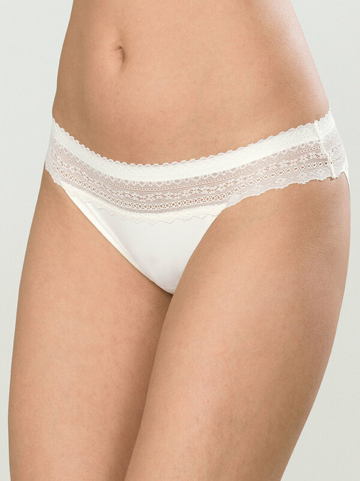 Женские трусы-слипы с низкой посадкой. Изготовлены по бесшовной технологии с минимум швов. Кромки по ноге и по талии подогнуты и приклеены, хлопковая приклеенная ластовица.  Нежное геометричное кружево по линии талии высотой 5 см – не передавливает тело и не натирает кожу.  Модель оценят те, кто ищет незаметное и невесомое белье на каждый день или особого случая.