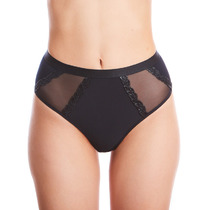 Женские трусы-слипы с высокой посадкой. Изготовлены по бесшовной технологии с минимум швов. Кромки по ноге и по талии подогнуты и приклеены, хлопковая приклеенная ластовица.  Нежное геометричное кружево по линии талии высотой 5 см – не передавливает тело и не натирает кожу.  Модель оценят те, кто ищет незаметное и невесомое белье на каждый день или особого случая.