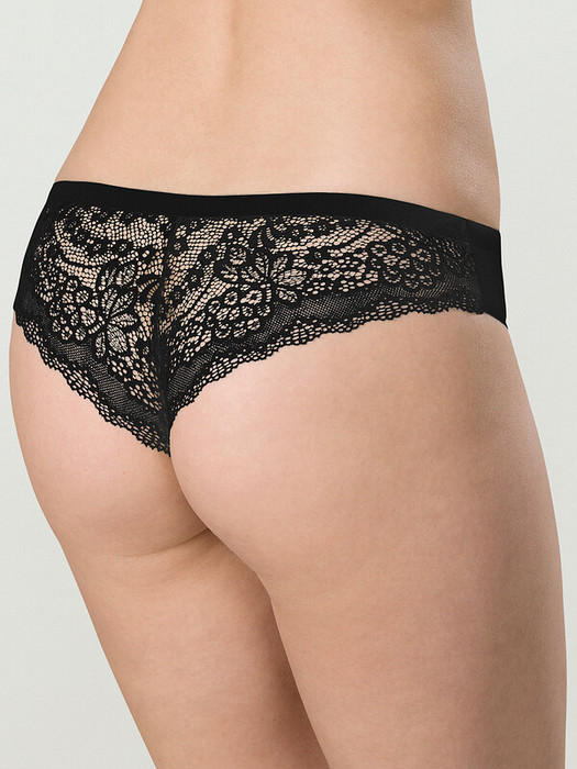 Женские трусы-танга с низкой посадкой. Изготовлены по бесшовной технологии с минимум швов. Кромки по ноге и по талии подогнуты и приклеены, хлопковая приклеенная ластовица. Нежное цветочное кружево придает модели утонченный вид. Модель оценят те, кто ищет незаметное и невесомое белье на каждый день или особого случая.