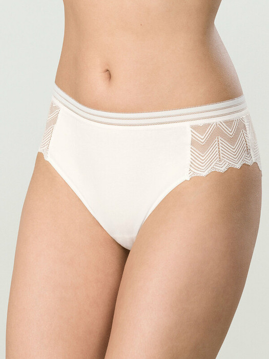 Женские трусы-слипы с высокой посадкой для влюбленных в красивый и активный образ жизни. Ткань с высоким содержанием хлопка и небольшим содержанием эластана. По линии талии мягкий принтованный эластик - не передавливает тело, не натирает кожу. Обработка по ноге эластиком для сохранения формы. Нежное геометричное кружево отражает тренд на умный дизайн.