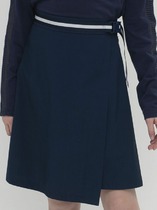 Классическая юбка для девочки в новом стильном исполнении. Дизайнеры позаботились о том, чтобы изделие держало форму и выбрали для пошива А-силуэт и плотное, но мягкое трикотажное полотно благородного синего цвета. Потайная молния сзади придает изделию цельный аккуратный вид. Модель дополнена фигурным поясом с защипами и позволяет играть с конечным образом при помощи втачной репсовой ленты. Одна деталь две вариации: романтичная натура предпочтет изысканный бант спереди, а юная карьеристка лаконичный узел сзади.
