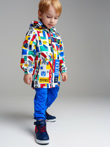 Ветровка прямого силуэта, умеренного объема для мальчиков. РЕКОМЕНДУЕМЫЙ ТЕМПЕРАТУРНЫЙ РЕЖИМ не ниже +10°С.  Углубленная пройма, мягкая спущенная линия плеча и наличие мембраны в составе ткани делают куртку максимально комфортной в носке.  Водоотталкивающая пропитка (DWR) наносится на внешнюю поверхность ткани и задерживает грязь и влагу снаружи. Дополнительный слой на внутренней стороне ткани не позволяет ребенку промокнуть. Двухшовный капюшон - улучшенная посадка по форме головы, неотстегивающийся, с регулировкой объема двухцветными шнурами и резиновыми стопперами, приятными на ощупь.  Декор - контрастная репсовая лента. Внутренний воротник-стойка и внутренние манжеты рукавов из рибаны - приятно к телу. Дополнительная регулировка ширины рукава по низу патой на липе. Хлопковый принтованный подклад придает весеннее настроение. Понизу утяжка эластичным шнуром с регулировкой пластиковыми стопперами. Тракторная молния с двумя резиновыми пуллерами с ветрозащитной планкой на липе - удобно застегивать. Защита подбо