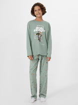 Пижама из футера с начесом для девочек футболка с длинным рукавом + брюки. Футболка с принтом. Может быть парой женской пижаме 184 футер (продается отдельно)