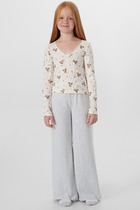 Очаровательная пижамка для принцессы, сшита из 100% хлопкового полотна. Изделие выполнено из двух тканей-компаньонов нежной расцветки, идеально дополняющих друг друга. О-образный вырез горловины и проймы обработаны контрастной тканью. В совокупности с бриджами на поясе-резинке они обеспечивают свободу движениям и комфортную посадку. Кокетка декорирована милым атласным бантиком и дополнена изящной сборкой. Удобная и приятная к телу, пижамка подарит комфорт, тепло и уют ребёнку.