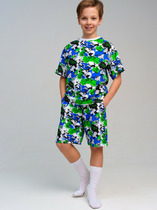 Детская пижама с шортами выполнена из 100% хлопчатобумажного трикотажного полотна. Футболка свободного покроя с перепадом длин украшена бантиком в цвет шорт. Горловина обработана окантовкой, низ изделия и рукав - узким спиральным швом. Шорты на поясе с резинкой дополняют боковые карманы, что придает пижаме дополнительные удобства при носке. В этой пижаме есть все, что любят наши маленькие модницы.