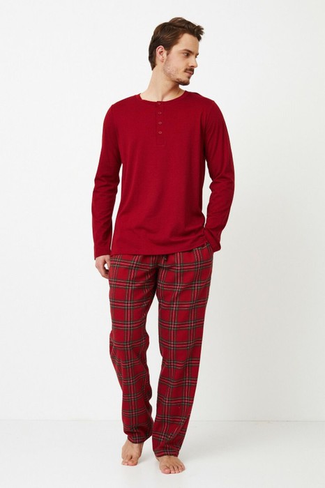 Длинная пижама Harry - незаменимая вещь для зимы, которая является не только классикой, но и праздничной традицией. Верх выполнен в красном цвете из хлопковой модальной ткани в рубчик. Круглый вырез украшен пуговицами для дополнительного комфорта. Брюки выполнены из мягкого матового хлопка в красную рождественскую клетку. У них есть карманы и регулируемая завязка на талии. Носить эту пижаму - все равно что укутаться в теплое и стильно отдохнуть холодными зимними вечерами. А когда вы уютно устроились в объятиях друг друга, почему бы не порадовать свою вторую половину пижамой с изображением Холли? Это идеальный способ разделить тепло и радость этого сезона вместе.
