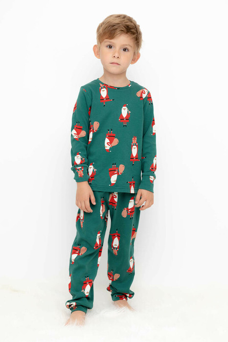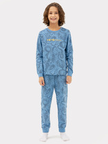 Трикотажный пижамный комплект из натурального хлопка. У джемпера длинные втачные рукава с мягкими манжетами. Брюки с удобным поясом на резинке и эластичными манжетами. Оригинальная набивка выполнена из стойких, гипоаллергенных текстильных красителей. Все трикотажные полотна производятся в соответствии с нормами Швейцарского сертификата ЭкоТекс.