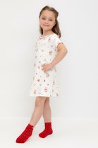 Комплект хлопковой пижамы из футболки и брюк. Футболка свободного кроя со спущенным плечом, спереди украшенная милым тематическим принтом. Брюки среднего объема, эластичный пояс обеспечит комфорт и идеальную посадку. По низу брюк эластичные манжеты.