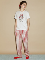 Пижама женская из гладкокрашеного трикотажного вискозного полотна с отделкой кружевом, состоящая из майки и брюк. Майка - свободного кроя, на широких двойных бретелях, с V-образным вырезом горловины. Полочка и спинка состоят из двух деталей с отрезной кружевной кокеткой. Проймы окантованы основным материалом.Брюки – свободные, средней длины, слегка зауженные книзу, с эластичной тесьмой по талии.