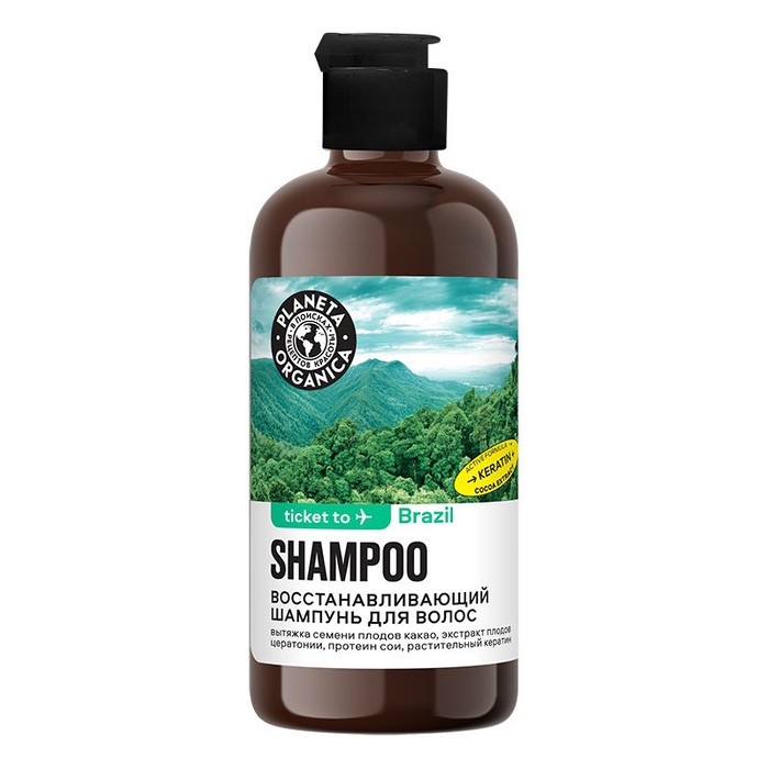 СОСТАВ/INGREDIENTS: Aqua with infusions of Organic Theobroma Cacao Seed Water (органическая вытяжка плодов какао), Organic Ceratonia Siliqua Fruit Extract (органический экстракт плодов цератонии), Hydrolyzed Soy Protein (протеин сои), Hydrolyzed Wheat Protein (растительный кератин), Sodium Coco-Sulfate, Cocamidopropyl Betaine, Lauryl Glucoside, Sodium Chloride, Glycol Distearate, Guar Hydroxypropyltrimonium Chloride, Citric Acid, Benzyl Alcohol, Benzoic Acid, Sorbic Acid, Caramel, Parfum.