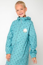 Оригинальный плащ свободного силуэта с асимметричной застежкой молнией выполнен из легкой водоотталкивающей ткани. Модель выделяется обилием необычных элементов, таких как комбинированная конструкция центральной застежки, которую частично закрывает клапан на пуговицах. Декоративные пуговицы использованы также в застежке капюшона. Плащ отвечает всем параметрам, характерным для детской одежды, отлично стирается и быстро сохнет.