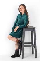 Платье для девочки из трикотажного хлопка с набивным рисунком. На спинке застежка-планка на двух кнопках. На полочке принт. Юбка со сборкой на талии. Спереди платье украшено декоративным бантом.