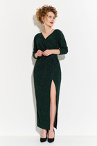 Стильное и комфортное платье из трикотажного полотна идеально подойдёт как для повседневных образов, так и для работы в офисе. Платье с контрастными кантами по рукаву реглан и по переду изделия. Вырез горловины фигурный с декоративной молнией и довязом. По переду карманы в швах. Спинка со средним швом и разрезом по низу. По низу рукава манжета. Длина платья 110 см, длина рукава от горловины 61см