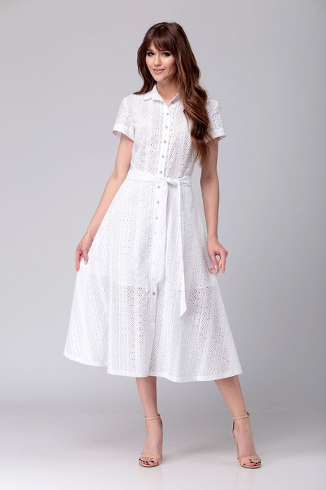 Натуральное платье ришелье на подкладке со сквозной застёжкой по переду на петли и пуговицы.