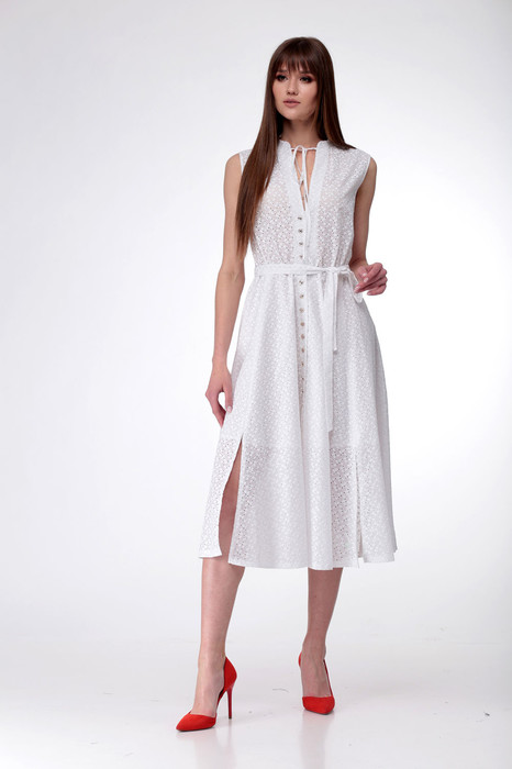 Хлопоковое ришелье на подкладке со сквозной застёжкой спереди на петли и пуговицы. Внизу по рельефам разрезы.