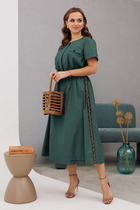 Офисное платье с укороченным рукавам. Манжеты необычной формы с пуговками. Застежка на тесьму молнию по спинке.